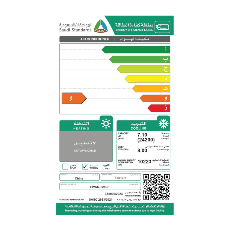 مكيف شباك فيشر , كمبريسور روتاري , بارد , 24200وحدة – (FWAC-T25CF)