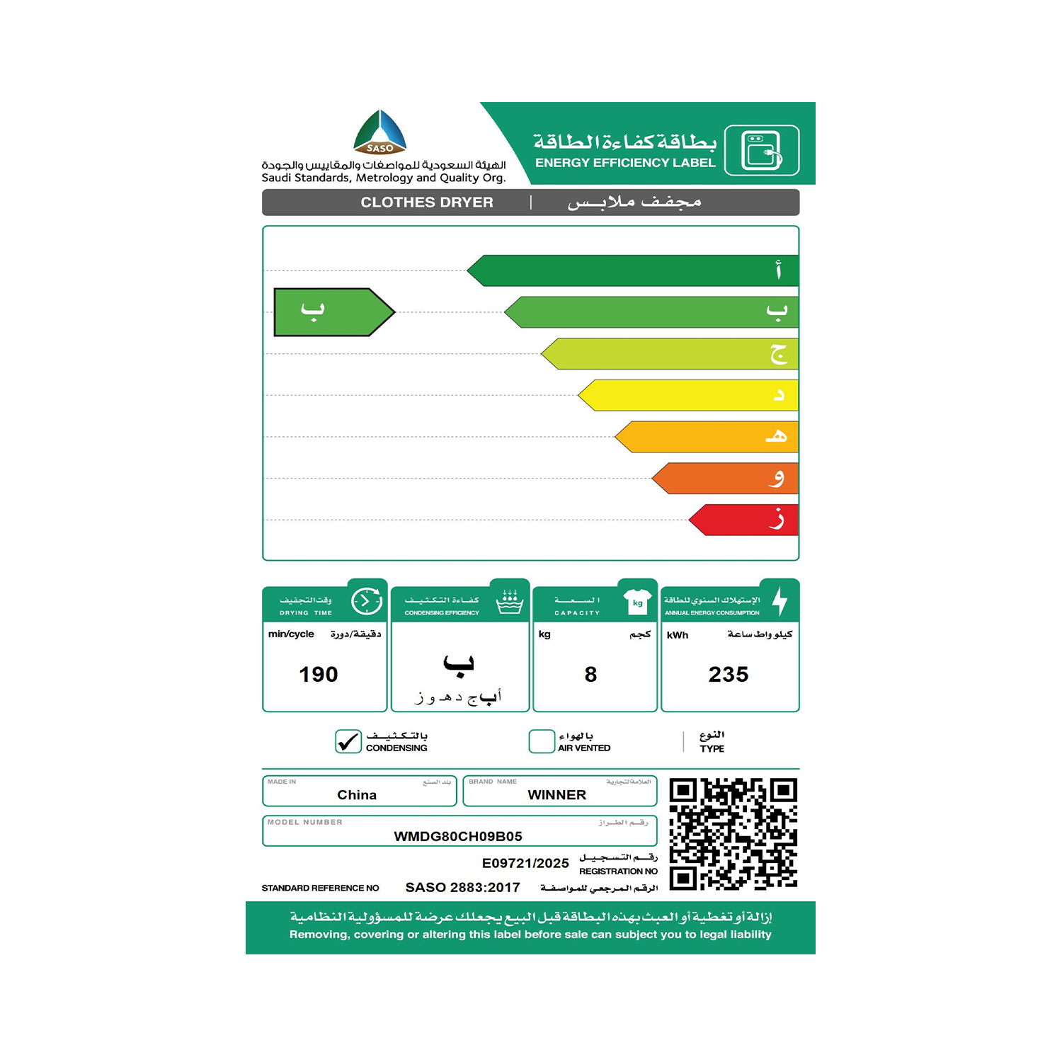 نشافة وينر , مضخة حرارية, 8 كيلو , ابيض- (WMDG80CH09B05)