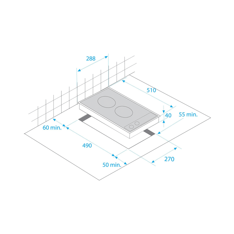مسطح بلت ان غاز كلفيناتور, 90سم , 5 عيون غاز ,1 شعلة ثلاثية , قواعد حديد زهر – (KH-G90-5BTL-KFSC-5)