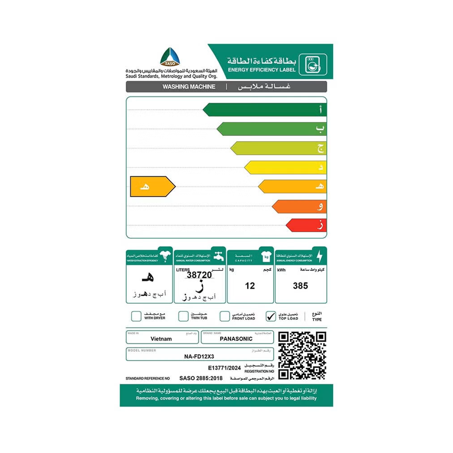 غسالة فول اوتومايك باناسونيك, تحميل علوي, انفرتر, 12كجم ,رمادي – (NA-FD12X3)