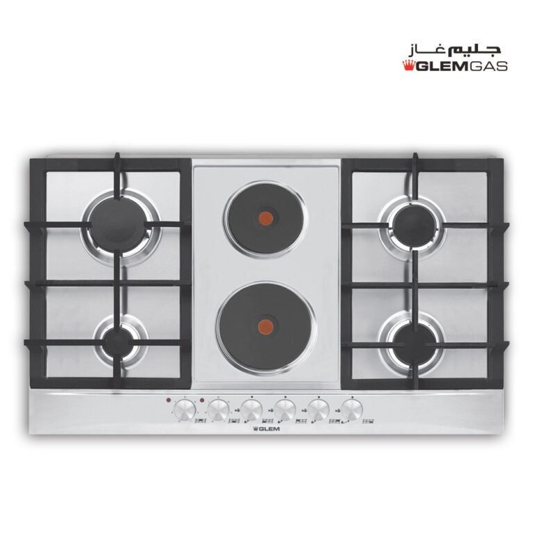 مسطح بلت ان غاز+كهرباء جليم جاز,90سم,4 عين غاز + 2 عين كهرباء,قواعد حديد زهر – (P9FVCGI)