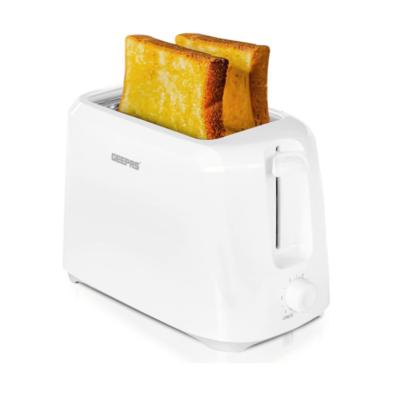 محمصة خبز كهربائية جيباس/ 6 درجات تحميص /2 فتحه / صينية فتات / 700وات / ابيض – (Gbt36515)