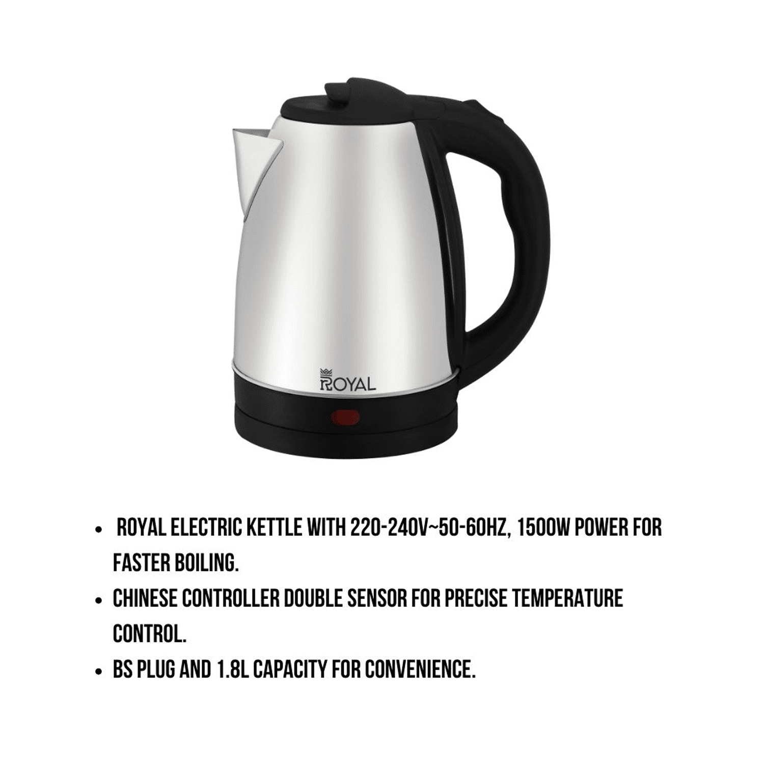 Royal Electric Kettle,1.8L,Stainless Steel,1500W