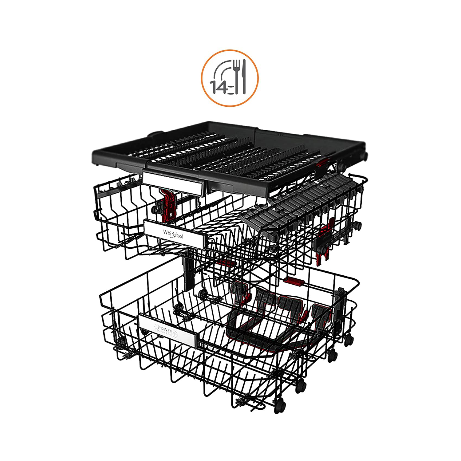 غسالة أطباق ويرلبول , 14 مكان 2 رف , 10 برامج , ستيل