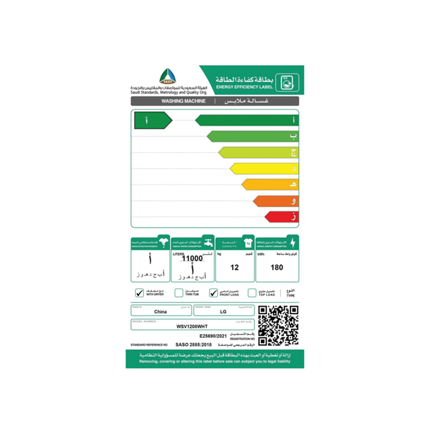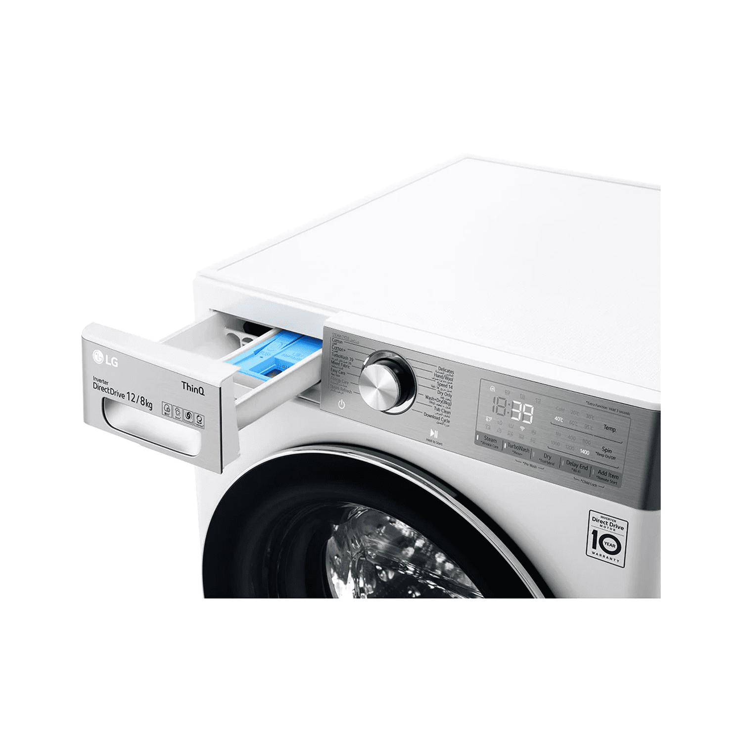 غسالة إل جي فول اوتوماتيك , تحميل أمامي , بخار, ماتور عاكس , واي فاي , غسيل تربو , 12 كجم - مجفف 8 كجم , ابيض
