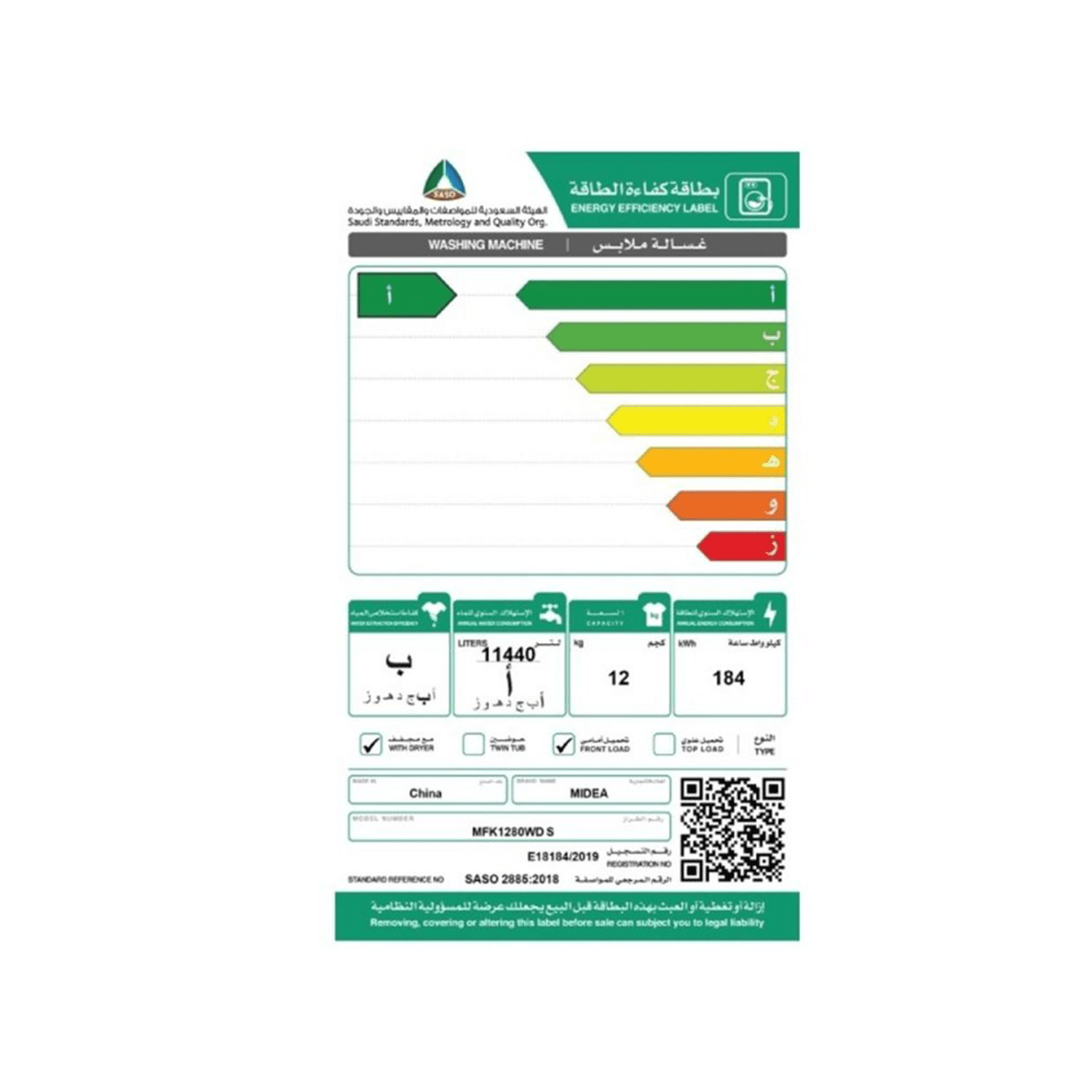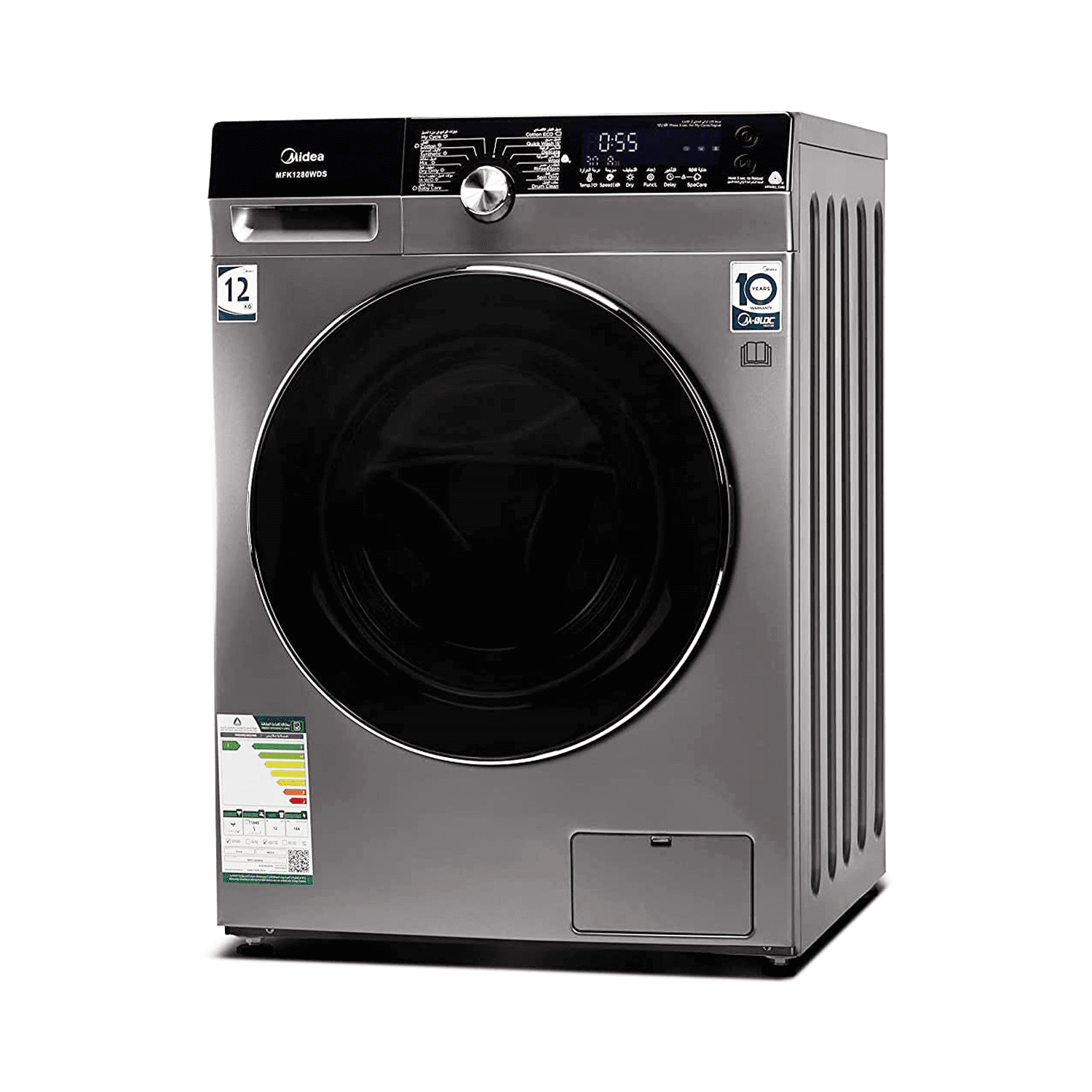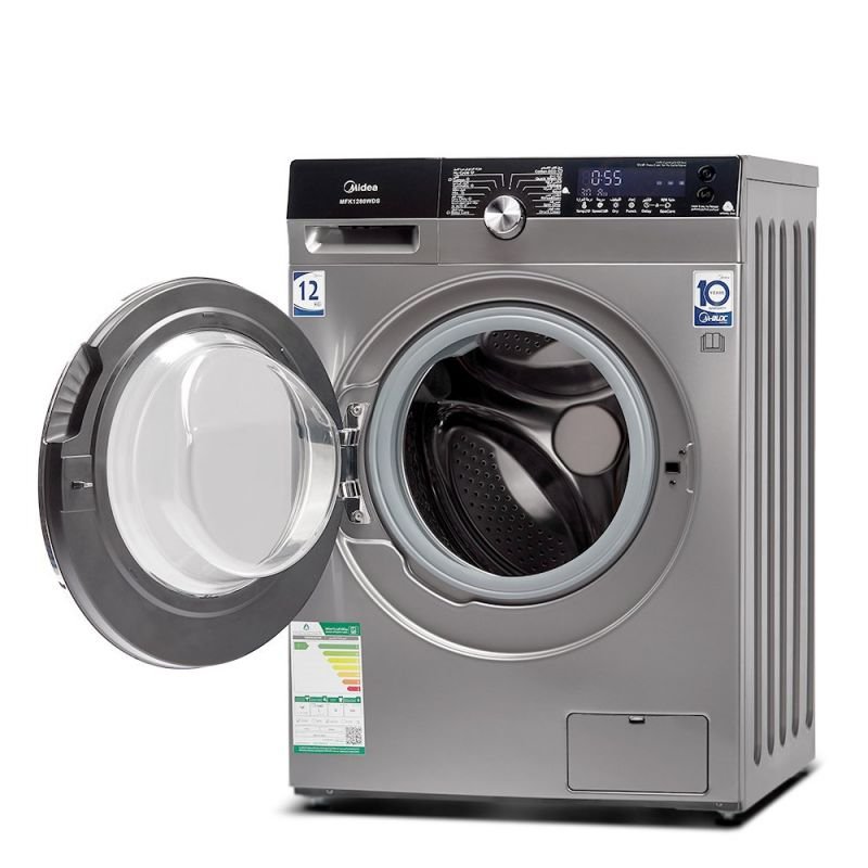 غسالة فول اوتومايك ميديا , تحميل امامي , انفرتر , 14 برنامج , 12كجم غسيل - 8كجم تنشيف , فضي