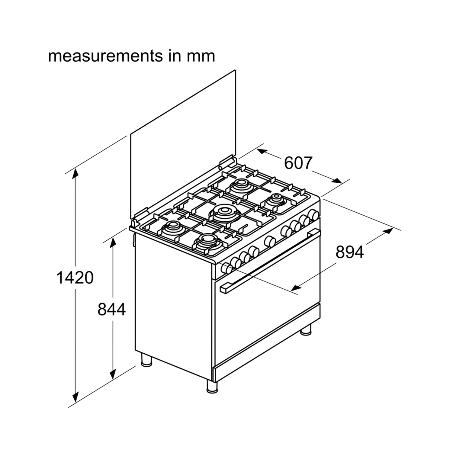 فرن غاز بوش, 5 عيون , 60*90 سم , شبك ثقيل , امان كامل , ستانليس ستيل
