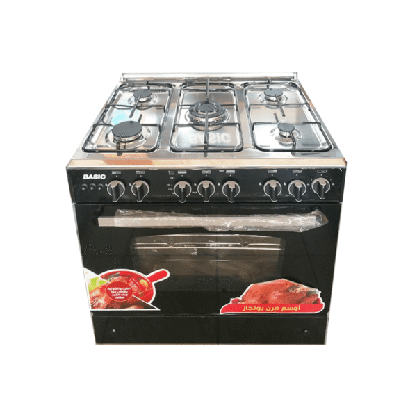 فرن غاز بيسك,5عيون,55*80 سم,امان كامل,ستيل