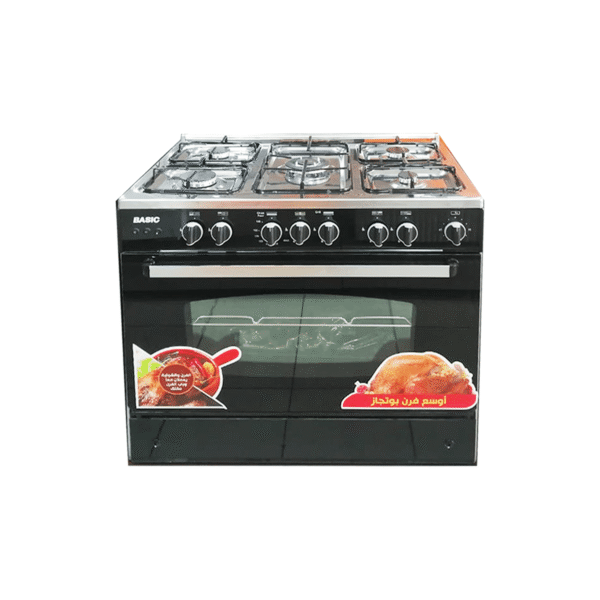 فرن غاز بيسك,5عيون,60*90 سم,امان كامل,ستيل
