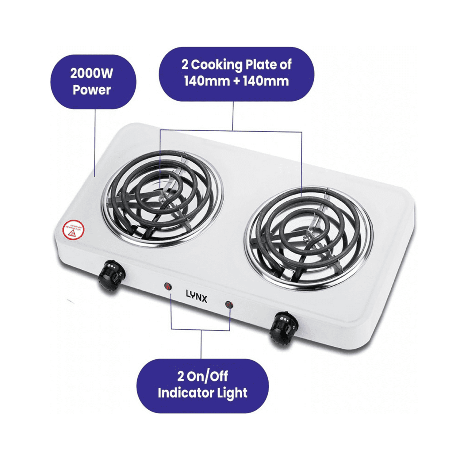 لينكس لوح تسخين كهربائي حلزوني , شعلتين , مقاوم للصدأ , حماية من الحرارة الزائدة , 2000وات , ابيض