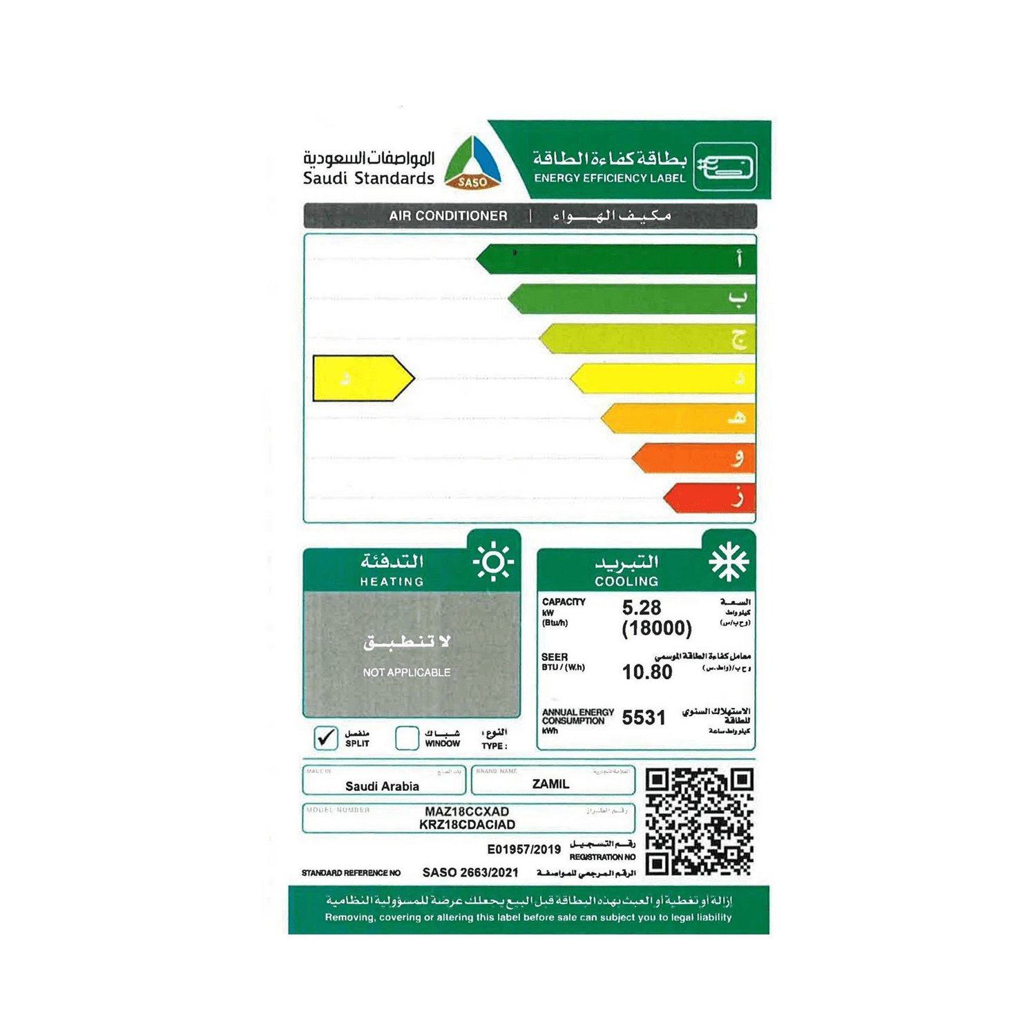 مكيف جداري سبليت الزامل,بارد,18000وحدة - كونسيرفر